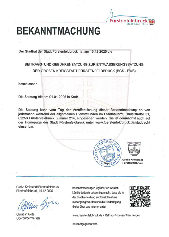 Beitrags- und Gebührensatzung zur Entwässerungssatzung