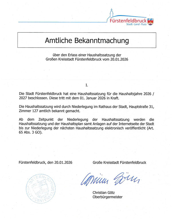 Bekanntmachung Haushaltssatzung 2026-27