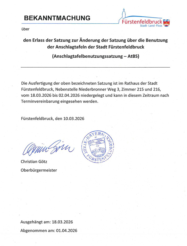 Änderung Satzung zur Nutzung der Anschlagtafeln