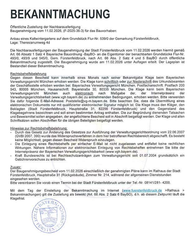 Öffentlichen Zustellung der Nachbauausfertigung, Theresianumweg 4d , Kaltwintergarten