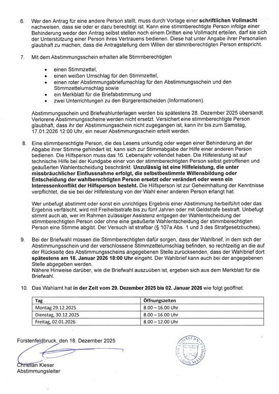 Recht auf Einsicht in das Wählerverzeichnis und die Erteilung von Abstimmungsscheinen für die die Bürgerentscheide