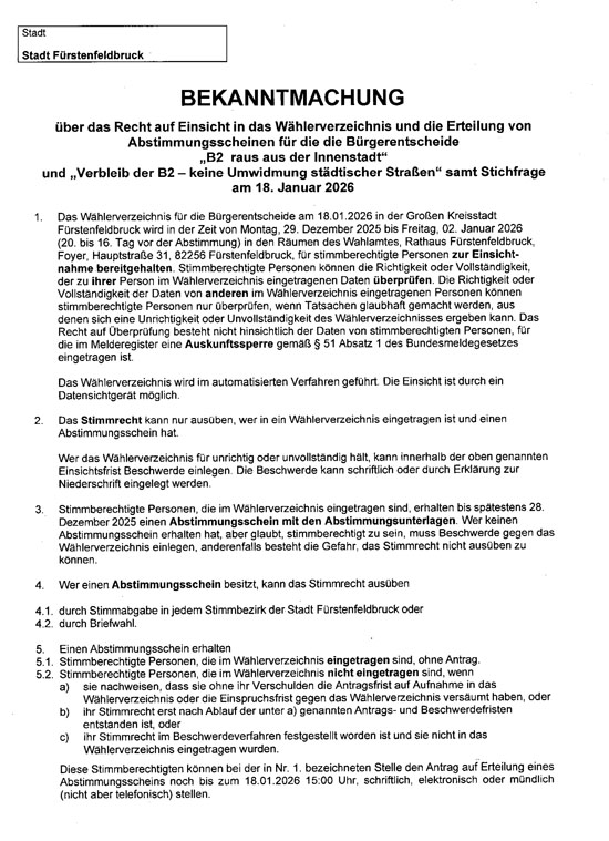 Recht auf Einsicht in das Wählerverzeichnis und die Erteilung von Abstimmungsscheinen für die Bürgerentscheide