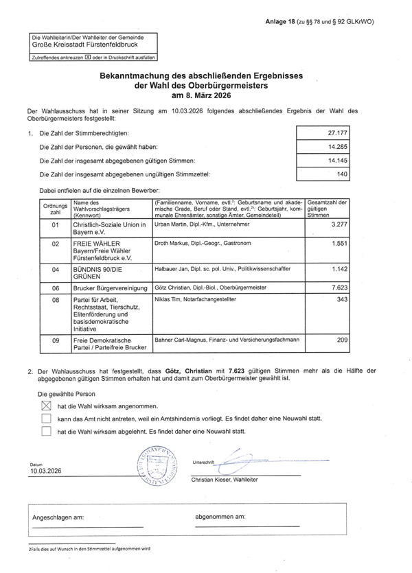 Endgültiges Ergebnis Wahl des Oberbürgermeisters 2026