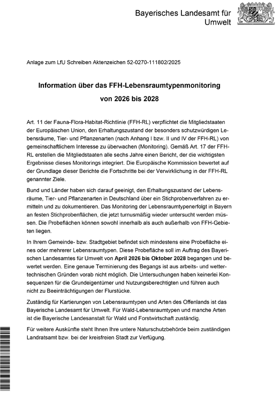 Bayerisches Landesamt für Umwelt: Information über das FFH-Lebensraumtypenmonitoring von 2026 bis 2028