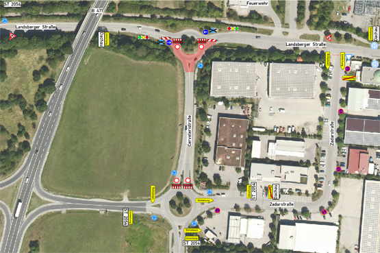 Von 30. März bis 24. April wird der Kreisverkehr an der Landsberger Straße auf Höhe der Cerveteristraße saniert. Daher kommt es in diesem Bereich zu Verkehrsbehinderungen und zu einer Sperrung der Cerveteristraße. Der Verkehr wird über eine Ampel geregelt. Die Umleitung von der Staatsstraße 2054 zur B 471 erfolgt über die Zadarstraße.