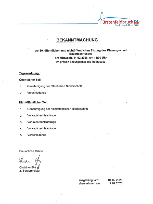 Sitzung des Planungs- und Bauausschusses am 11. Februar 2026