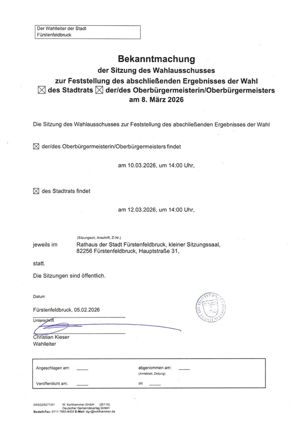 Sitzung Wahlausschuss zur Feststellung Ergebnis Wahl Stadtrat und OB 2026