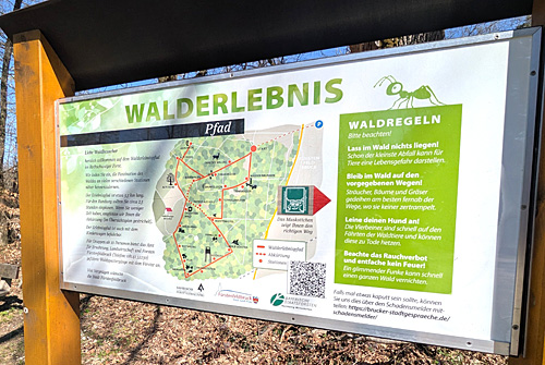 Die Starttafel am Walderlebnispfad im Rothschwaiger Forste ist jetzt mit einem QR-Code versehen, der auf die Wegstrecke bei outdooractive verweist. So hat man die Strecke immer auf seinem Smartphone digital dabei.