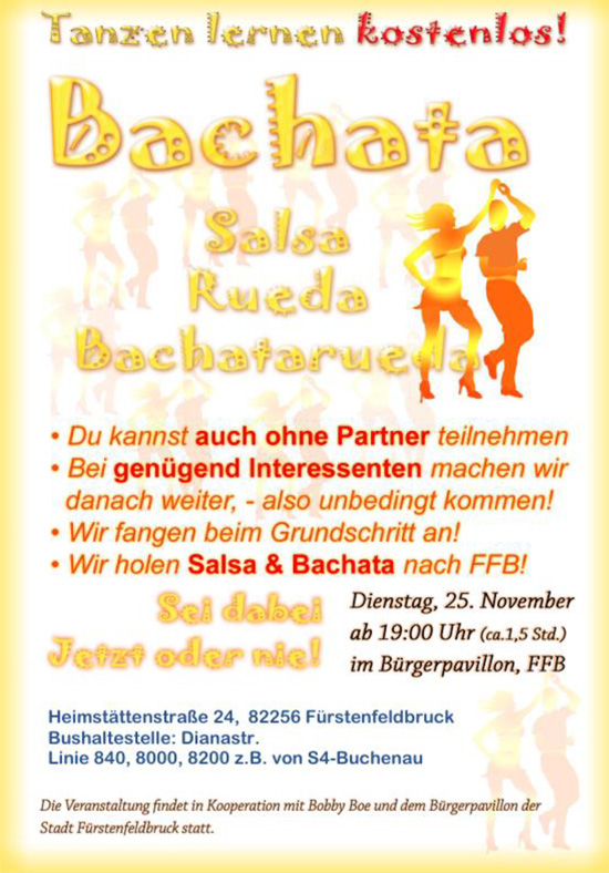 Ob Sie erste Tanzschritte wagen oder bereits Erfahrung mitbringen – lassen Sie sich von der Musik tragen und entdecken Sie, wie bewegend Bachata sein kann.